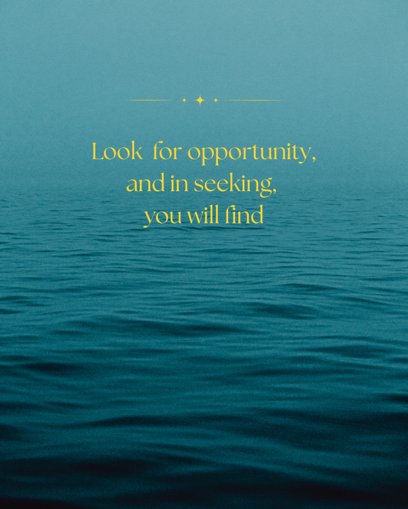 Look for opportunity, and in seeking you will find.